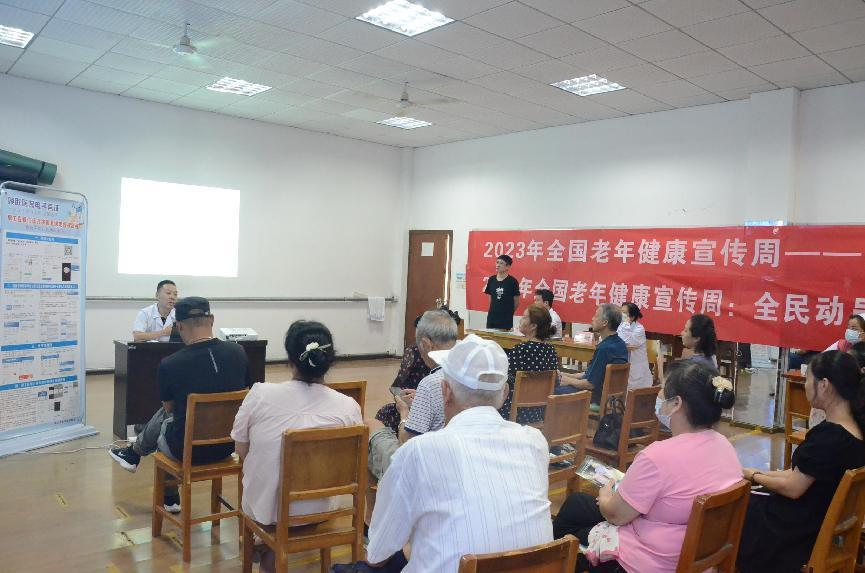 老年健康宣传周活动,通过张贴海报、展板展示、分发折页、健康讲座、健康义诊等方式,开展多样化的宣传,向周围居民宣传和科普老年健康知识、科学运动知识及中医药健康知识。