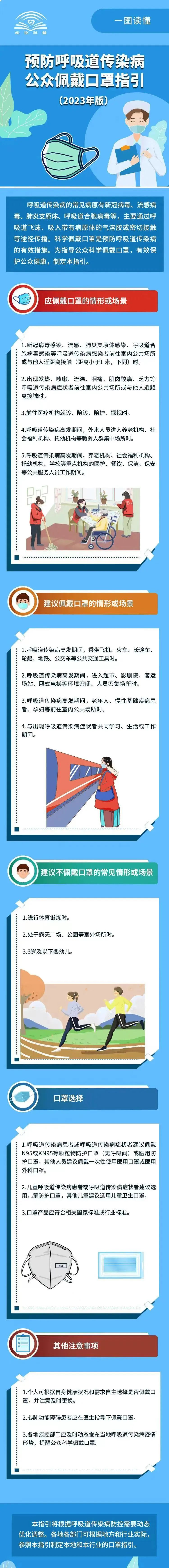 3.各地疾控部门应及时动态发布当地呼吸道传染病疫情形势,提醒公众科学佩戴口罩。