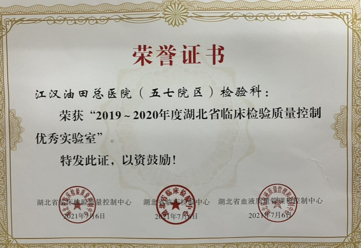 为给广大就诊患者和临床提供准确可靠的检验报告,根据市卫健委的要求,科室全面实施本地区检验结果的互认工作,将实验室质量控制放在日常工作的首要位置,通过对医学实验室质量管理和统一技术标准,提升我院医学实验室的检验质量水平。我院检验科连续多年被评为“全省临床检验优秀实验室”。
