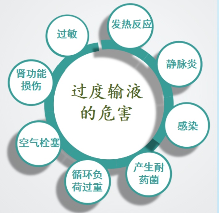 为了避免过度输液危害的发生,请大家记住“能口服不肌注,能肌注不输液”用药原则。合理使用静脉输液需要全社会积极倡导和普及,是保障医疗安全和大众健康的重要环节。