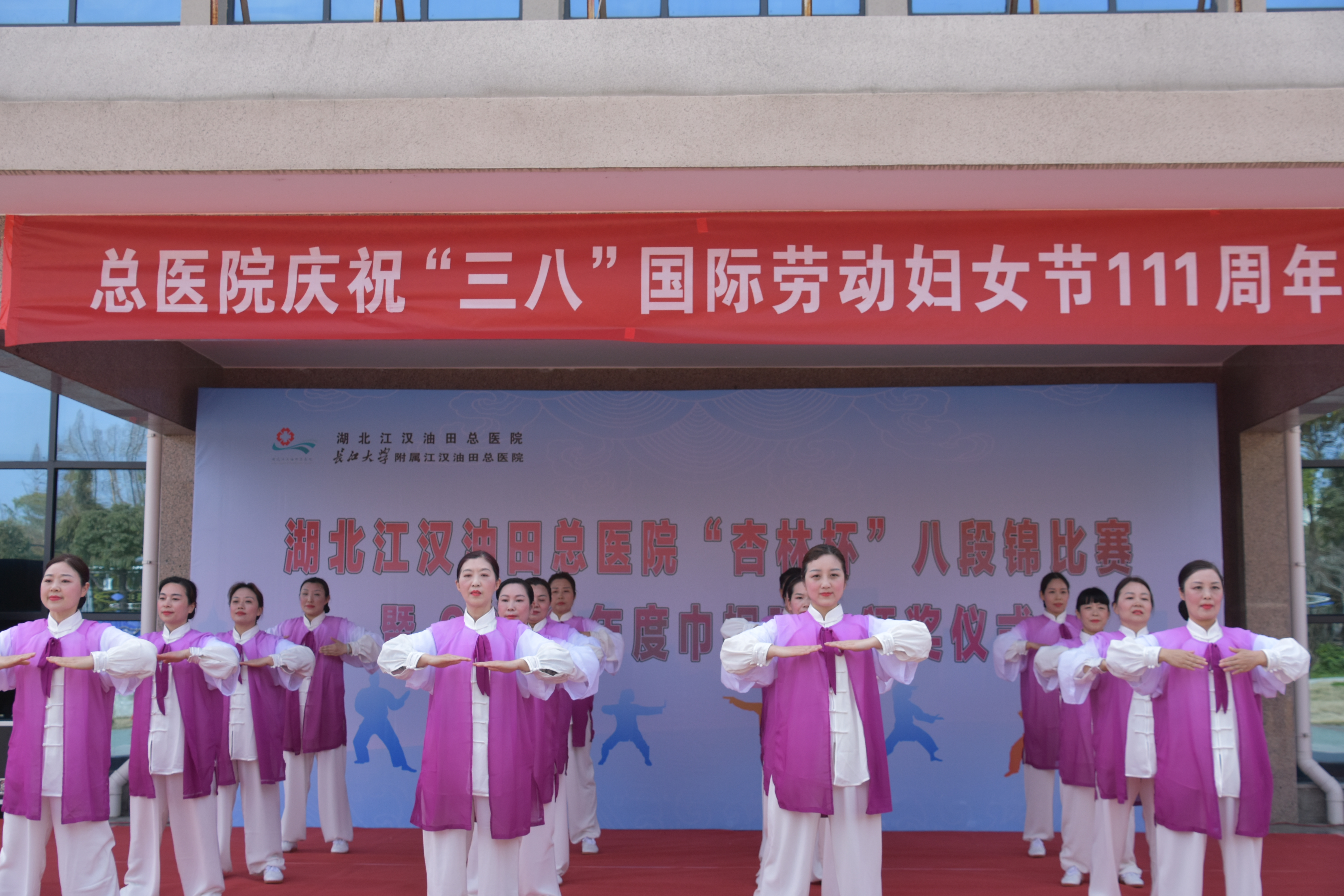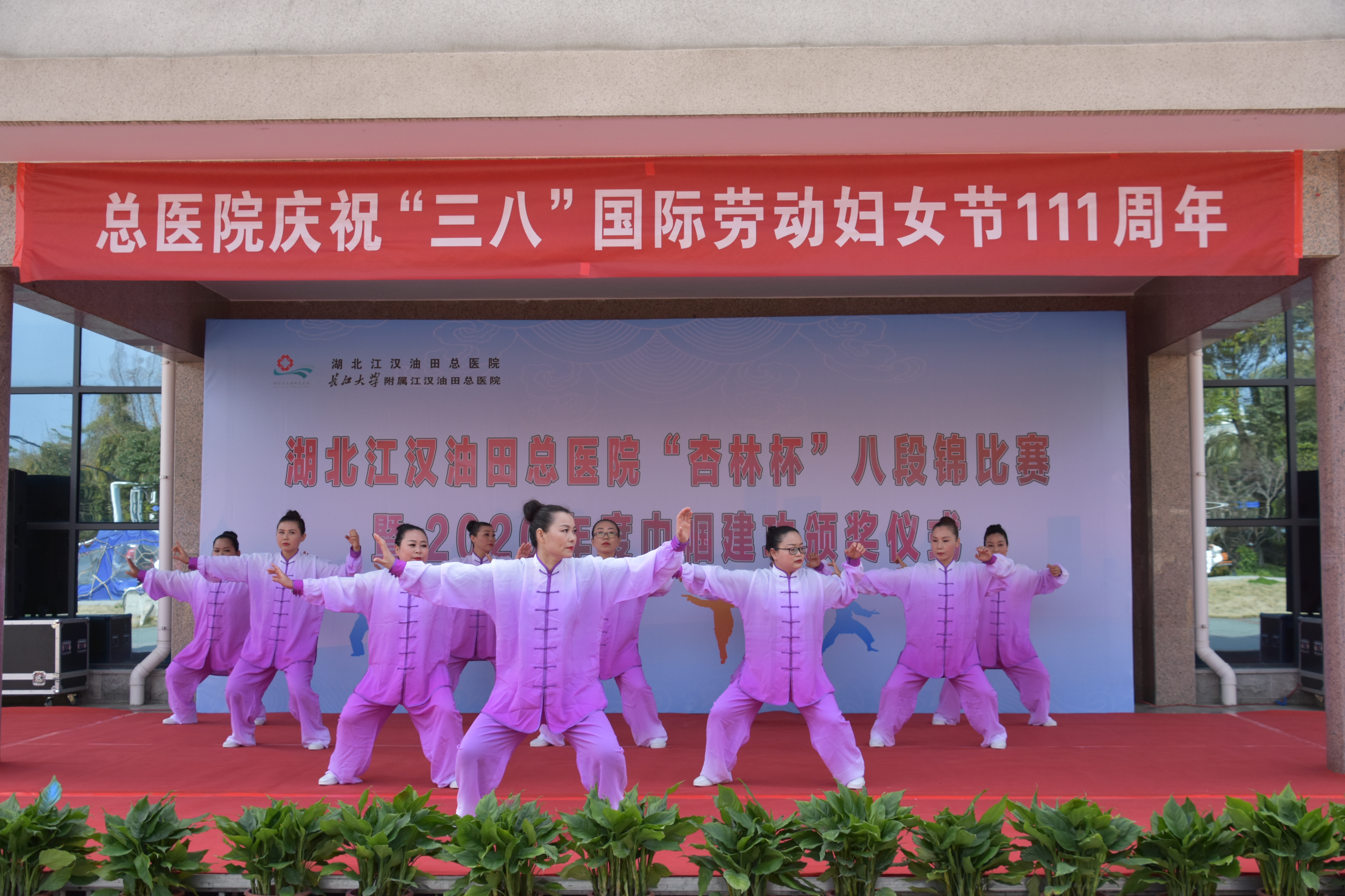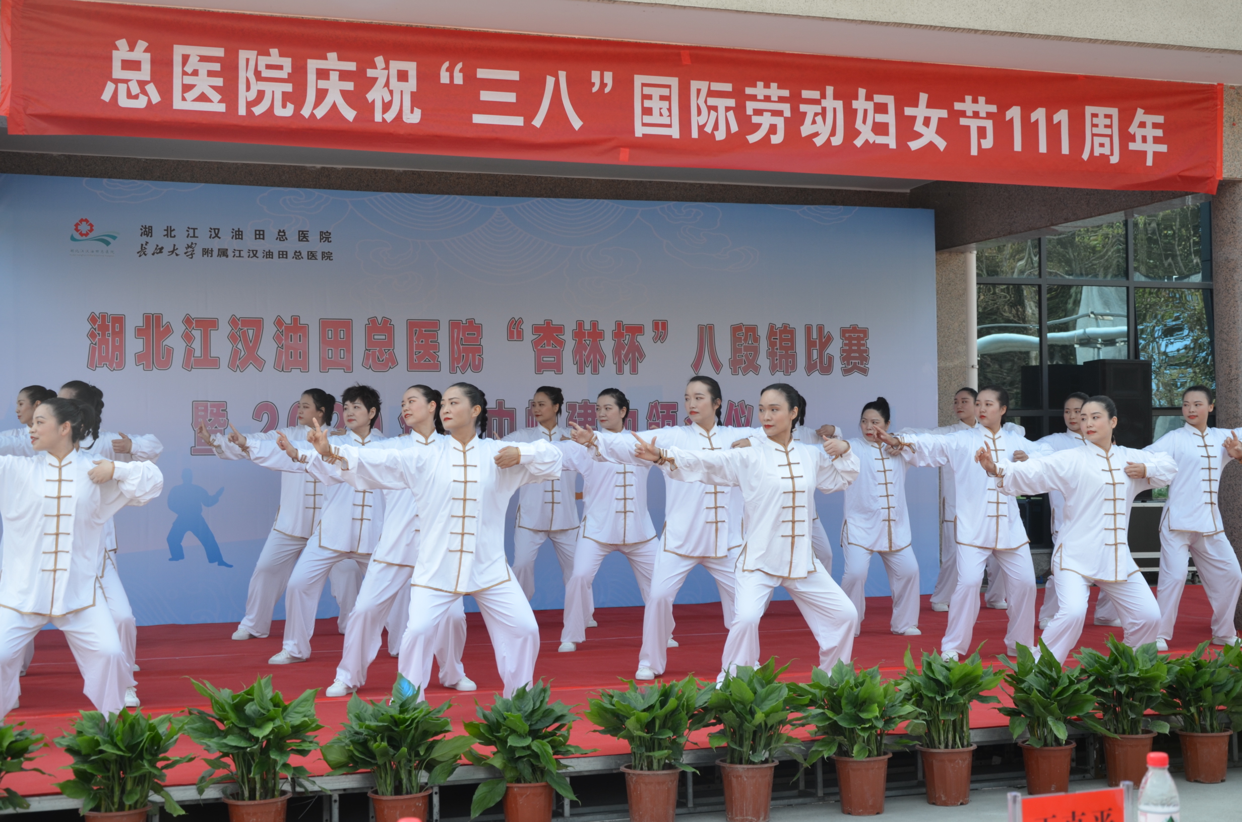 健身心 展风采 油田总医院举办庆“三八”“八段锦”比赛暨2020年度巾帼建功颁奖庆祝大会