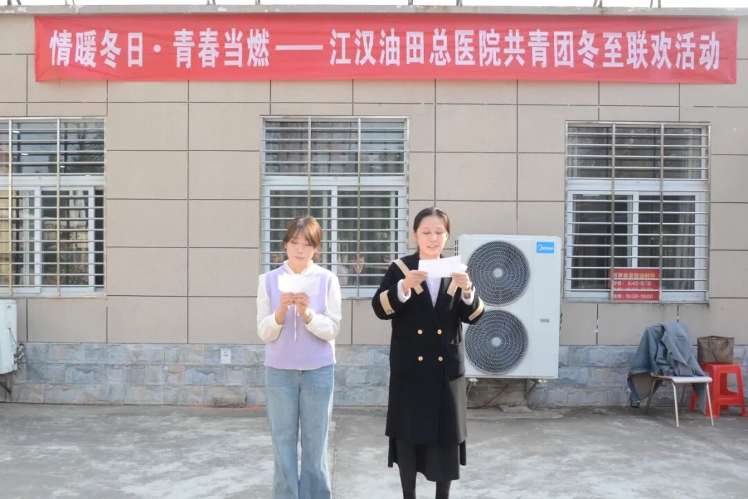 12月19日下午,江汉油田总医院共青团“情暖冬日 青春当燃”冬至联欢活动在院营养食堂顺利举行。院党委副书记工会主席文佐娟来到现场,与总医院青年们共同迎接冬至佳节的到来。