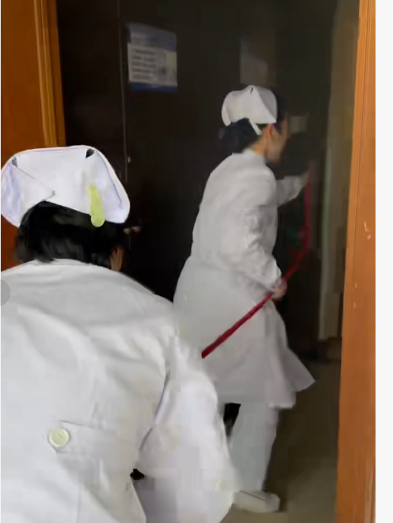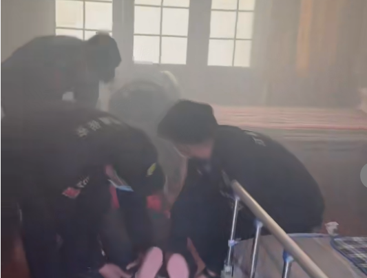 针对老年患者行动不便的特点,工作人员演练的是“特殊应急技能”——有人小心翼翼地搀扶老人,有人稳稳地推着轮椅,有人及时用湿毛巾捂住老人口鼻,全程有条不紊。“哪怕慢一点,也要让每位老人都有生存的机会!”这是演练中最令人动容的信念。