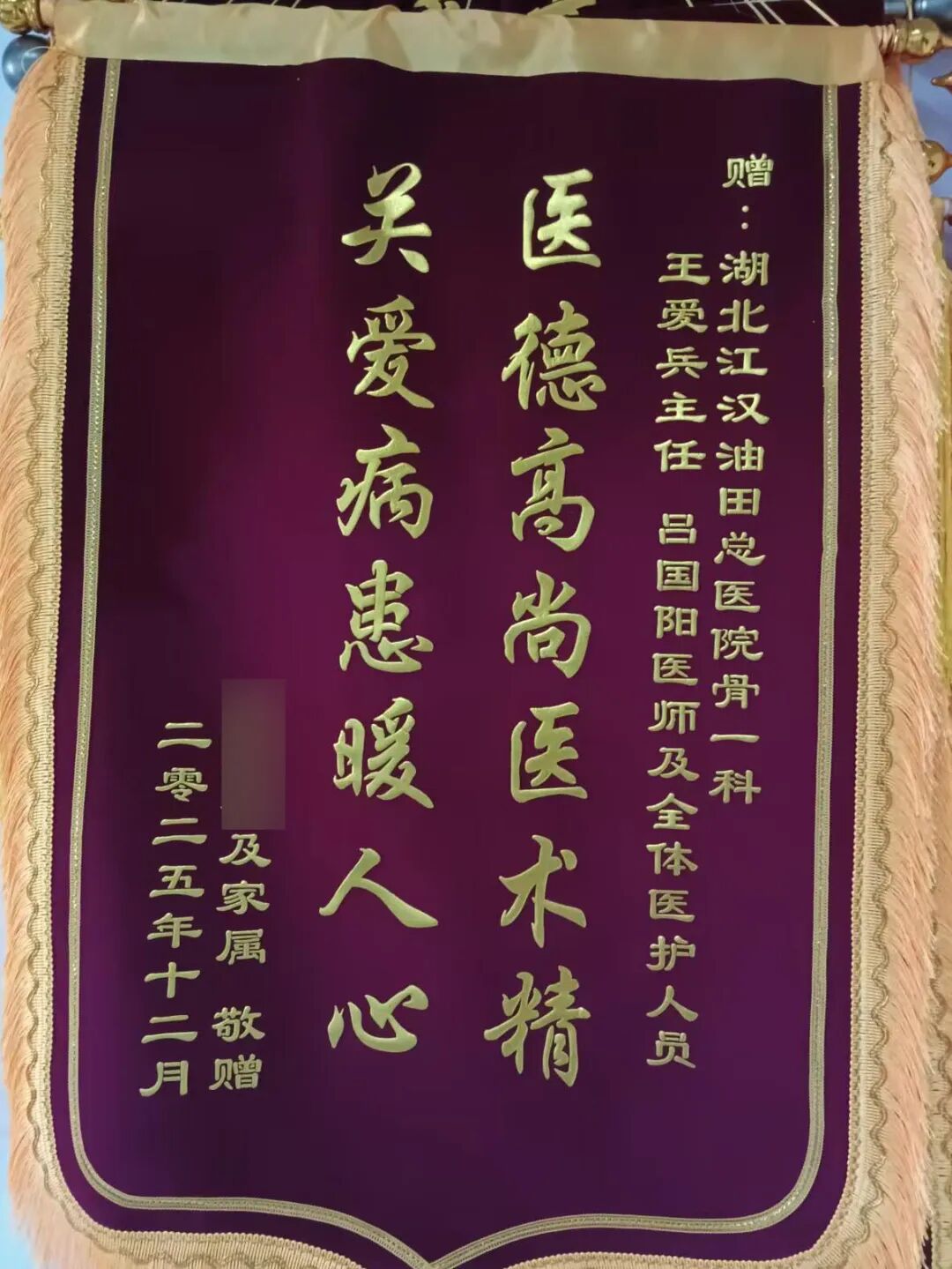 经过两周左右的治疗,王先生病情稳定,顺利康复出院。他和家属对全体医护人员的精湛医术与贴心照料感激不已,特意为科室送来锦旗。这面锦旗不仅是对医护人员的感谢,更是对他们工作的认可和肯定。王先生的康复,让我们看到了医疗的希望和力量,也让更多的患者对未来充满了信心。