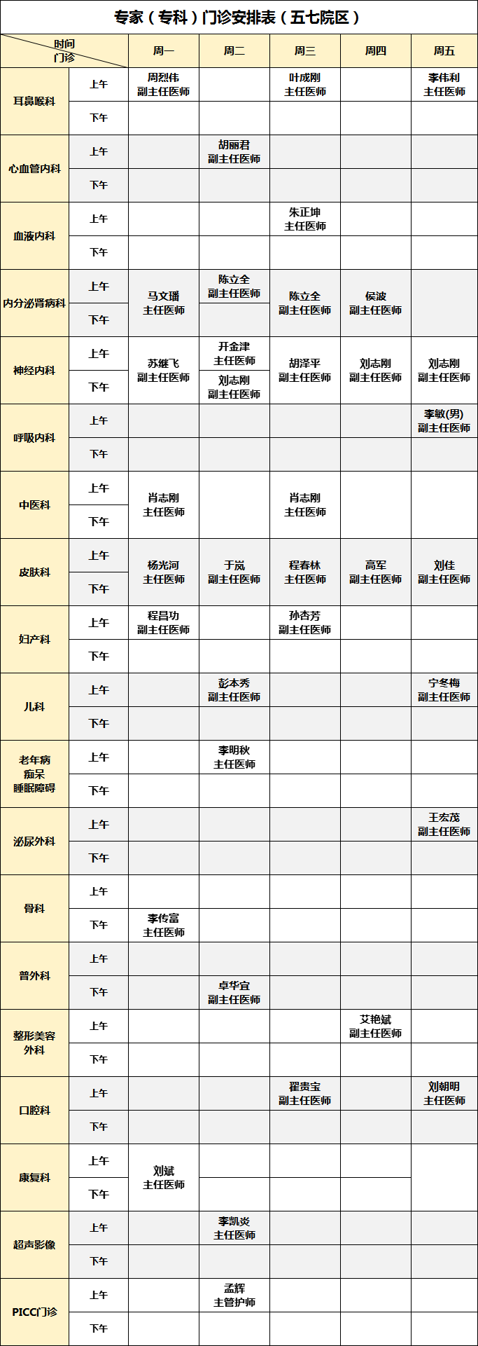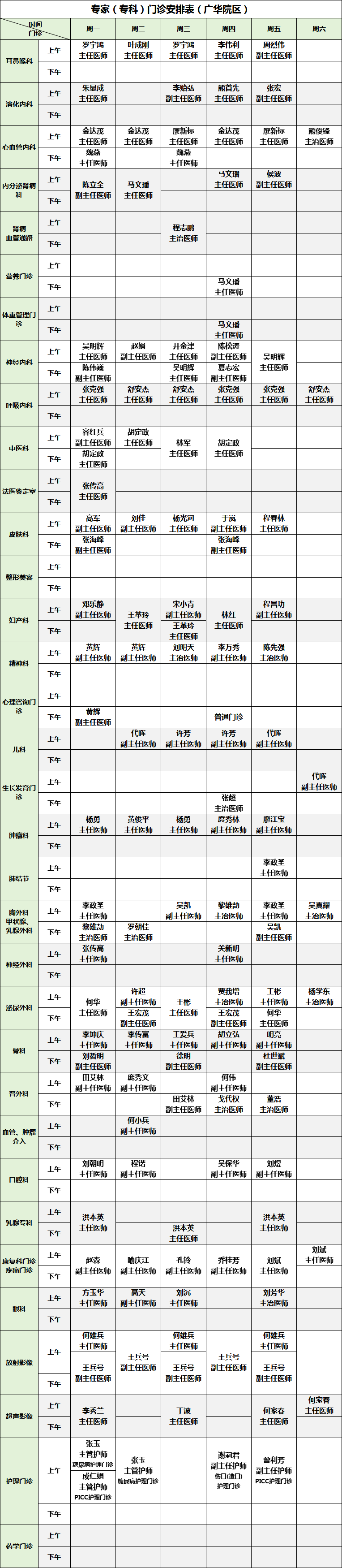 为方便患者安排就医时间,我院公布2026年3月30日-4月3日广华院区、五七院区专家(专科)门诊安排如下: