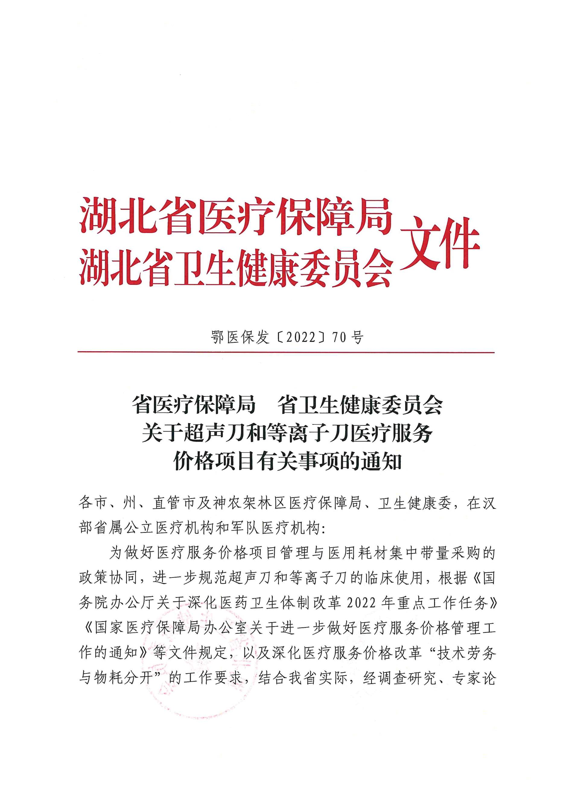 关于湖北油田总医院超声刀和等离子刀医疗服务价格项目的公示