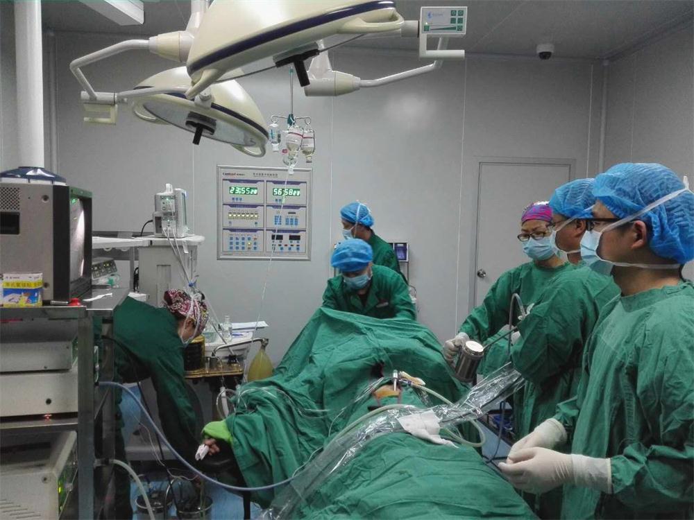 入手术室时,病人心率154次/分,血压93/52mmHg,呼吸急促。手术麻醉科几个专家商议决定,施行抗休克治疗后,在全麻下由田艾林主任主刀,张雨胜和董晧两位医师协助,麻醉科张旸、王永顺、夏胜波三位专家配合,经过近3个小时的全力抢救,至大年初一凌晨2点多钟,手术才结束。当医护人员拖着疲惫的身体走下手术台时,外面庆祝新年的鞭炮声不绝于耳。