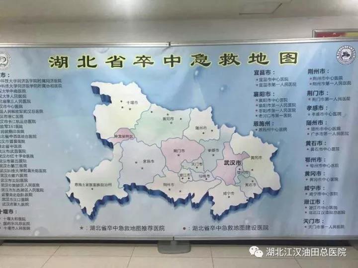 湖北省卒中急救地图由若干家脑卒中定点救治医院加1个质控中心加1个120急救网络串联而成,使卒中病人在最短的时间内由专业的120急救人员精确识别,快速送到有溶栓能力的定点医院,开通绿色通道,进行规范化救治,有效避免患者院内延迟、二次转院、救治断点等情况。