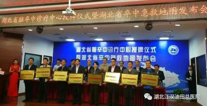 10月15日,湖北省脑卒中诊疗中心在湖北省第三人民医院(湖北省中山医院)挂牌。油田总医院副院长何国胜、神经内科专家刘志刚、吴明辉应邀到会。会上,湖北省首张“湖北省卒中急救地图”发布,49家医院形成一个覆盖全省的 “黄金急救圈”。油田总医院被确定为湖北省卒中急救地图推荐医院。