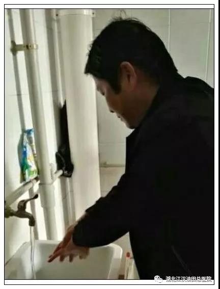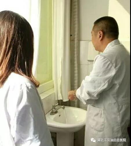 党委副书记陶银保,虽然是机关行政人员,听说我们要抽考他洗手,乐呵呵地站起来,一边念着口诀,一边进行洗手,动作标准无误!