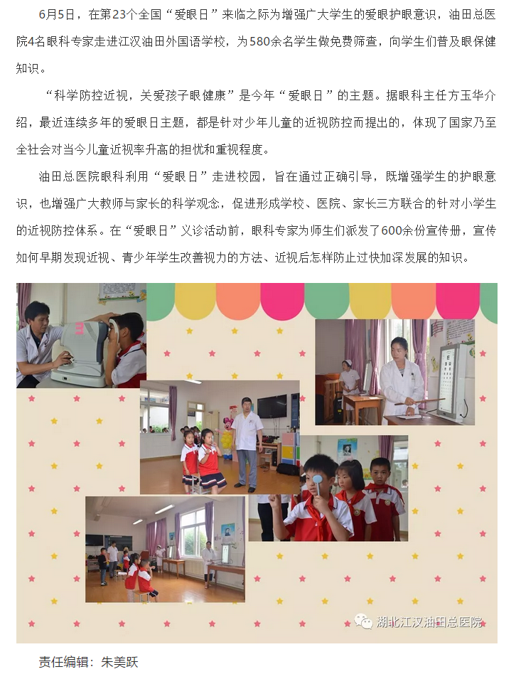油田总医院专家走进外国语学校开展“爱眼日”活动