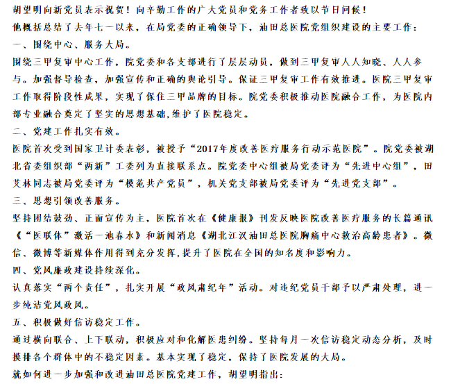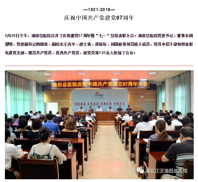 油田总医院召开庆祝建党97周年大会