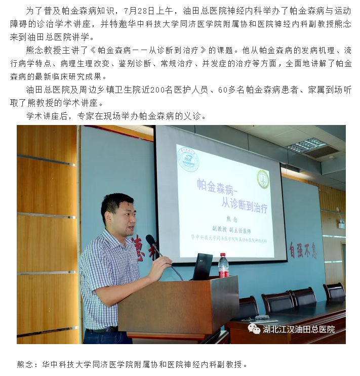 油田总医院举办帕金森病与运动障碍的诊治讲座及义诊