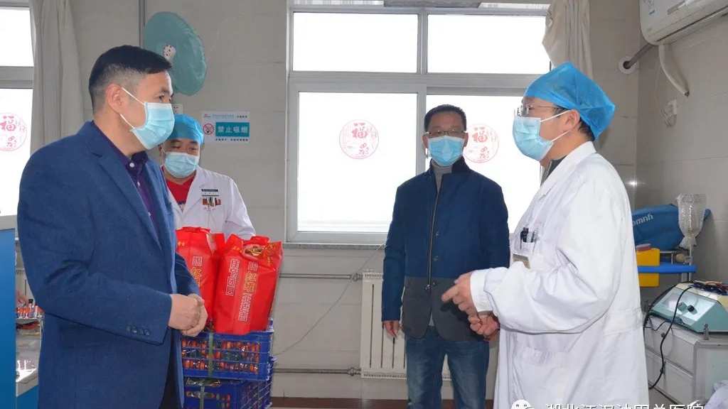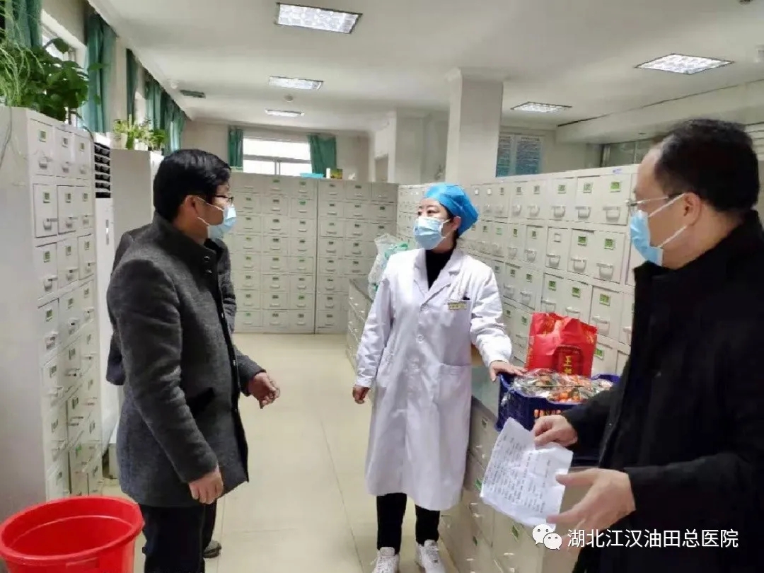 2月12日大年初一,油田总医院院领导带领各组,看望慰问春节期间仍坚守岗位的值班员工,向他们致以新春的问候和祝福,把新年的第一份关爱送到他们身边。