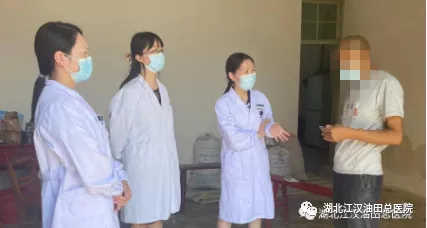 在潜江市园林镇紫月村,走访慰问了一位顽固性高血压透析肾友,欧阳梅护长现场指导他如何居家血压监测。周小栋医生还认真查看了他的用药情况,并重新搭配了用药方案。患者开心的连声道谢。