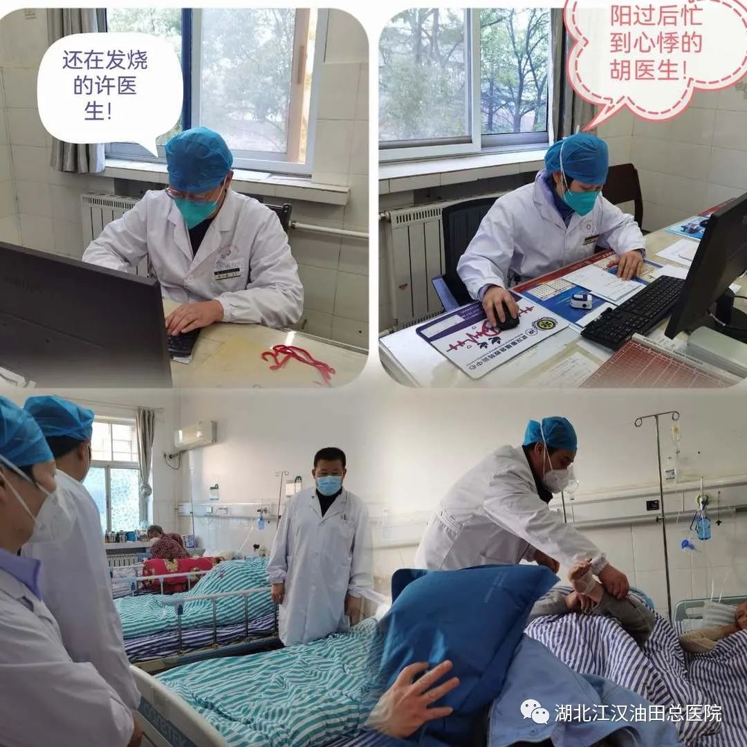 在班上高烧39℃的谢杰芬、李梅芳、曹贵、胡杏、吴佳妮一直坚持着把自己的班上完。护士陈雪萍也是“阳过”后休息几天主动回科室上班了,因为工作的劳动强度太大,她常常走路气喘、满脸通红、心跳加快、血氧饱和度降低,她常常边吸氧边书写护理资料。