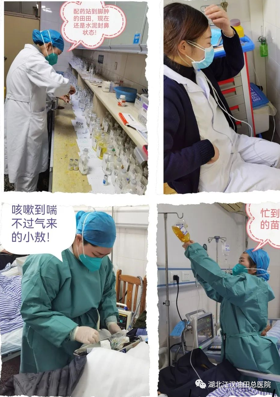 28日,所有的医生护士全部返岗。还在发烧的医生喻庆江、张霞,护士蔡玲玲、艾丽,咳嗽到喘不过气来的医生赵森、护士文志萍、江峡、陶丽、彭江、肖玲,刚从隔离病房回来没休息直接来上班的姜灿,午休时间举着吊瓶的护士长……康复针灸医生姚明新医生,休息时间也到病房来帮忙:“我高烧,自己给自己扎针灸退烧,有效果。有病人愿意的,我可以做针灸”!