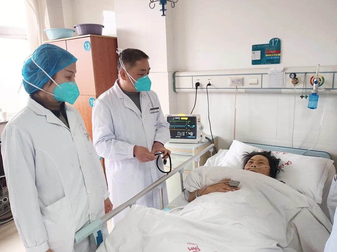 聂阿婆血氧饱和度进行性下降,生命危在旦夕。科主任曹鄂斌和主管大夫王璞立即进行气管插管术、呼吸机辅助呼吸。在患者呈镇静镇痛状态,给予俯卧位通气+高流量湿化氧疗仪等对症治疗后,患者病情相对稳定。但是,患者仍然意识模糊。
