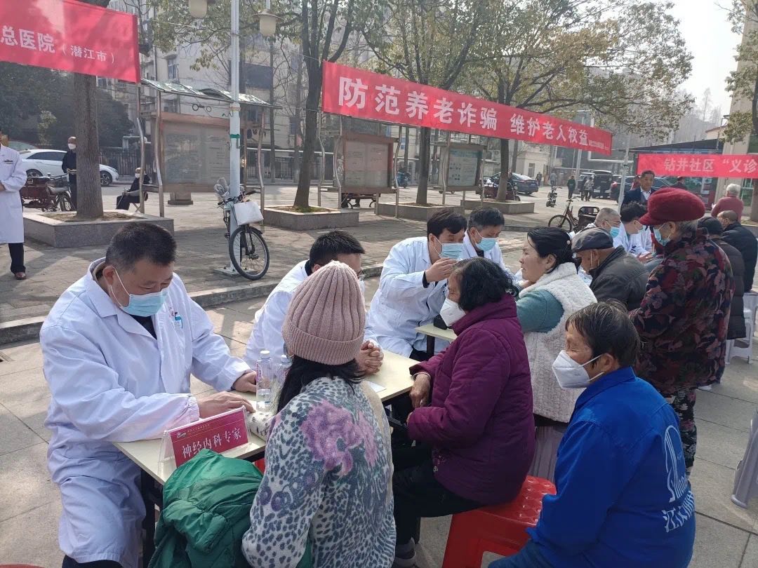 这天一大早,总医院神经内科、内分泌肾病科、中医科、老年医学科、康复医学科、骨科、眼科、口腔科、皮肤科、耳鼻喉科、脑心健康管理等10多个专业23名专家走进钻井社区,带着总医院专家的特色技术和优质服务,与社区居民面对面、零距离贴心服务。医护专家送健康到居民家门口,吸引了大批社区居民前来问诊。