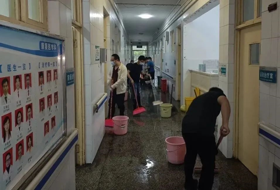 院领导积极应对,采取有力措施,积极做好自救工作。一是积极做好病人安抚工作。将一楼住院患者全部转移至二楼病房。医护人员守候在病人身边安抚病人情绪。二是组织机关后勤人员在医技科室垒足沙袋保护医疗仪器设备免受损失。三是组织抢险队伍冒雨对全院各排水管道逐一进行巡视检查,全力疏通管道,尽快排出积水。四是安排工作人员每天按时消杀有毒有害物质。五是保证病人正常饮食。病区食堂工作人员按时送餐到患者床边,解决患者的后顾之忧。
