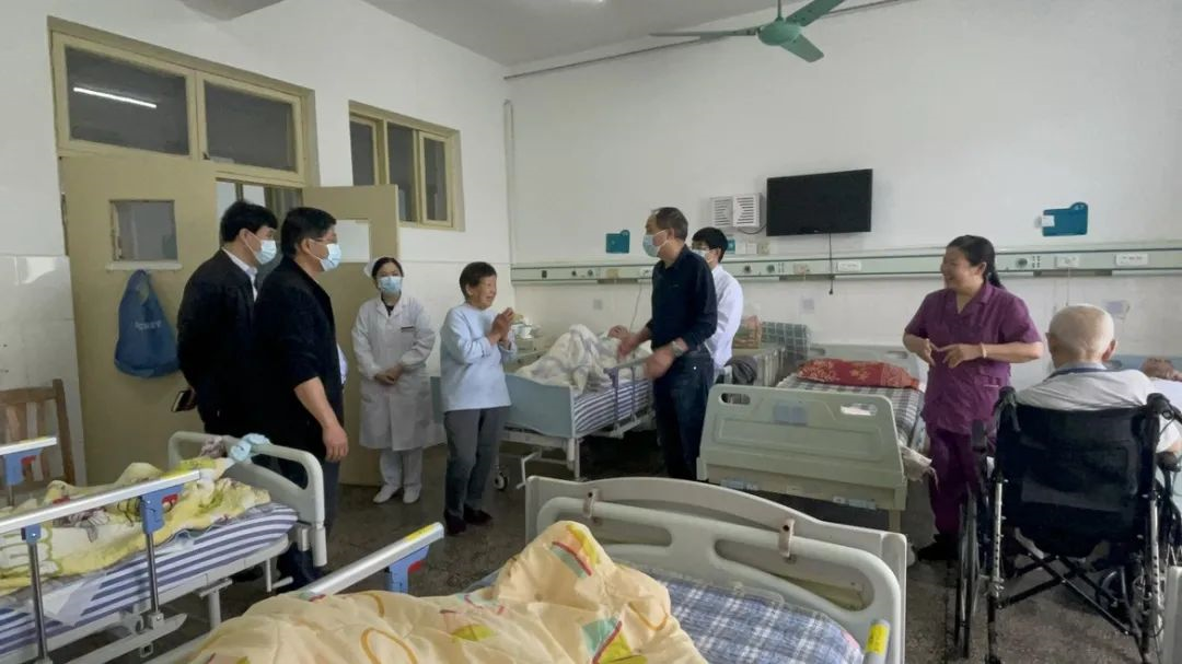 5月27日,油田总医院党委书记陶银保、院长邵士清等院领导带领相关科室负责人,来到受灾较重的老年医学科和康复医学科等科室查看受灾情况并走访慰问在院患者。