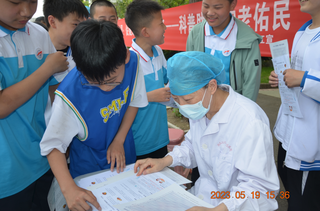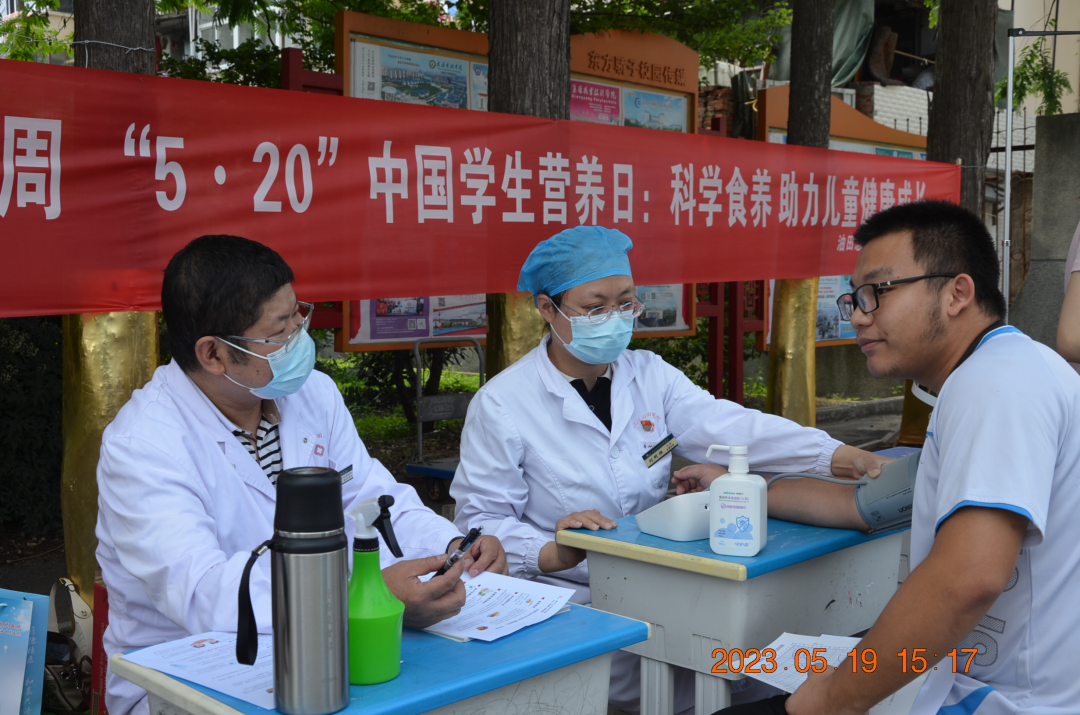 医护专家走进校园为学生们进行健康营养方面的咨询义诊。在现场医护专家给学生们量身高、体重,测血压,解答学生们所关注的身高、营养搭配等问题,利用食物模型给同学们讲解食物的种类、如何搭配。针对同学们提出的偏食问题给予纠正,受到学生们的赞许。