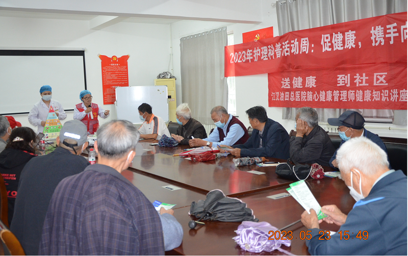 脑心健康管理专科护理团队为老年人授课,讲解如何识别卒中、卒中的处理流程、生活饮食习惯、卒中老人的护理等内容,增加老年人快速识别卒中、知晓处理方法及流程。还讲解了慢病如何健康全周期护理的知识。