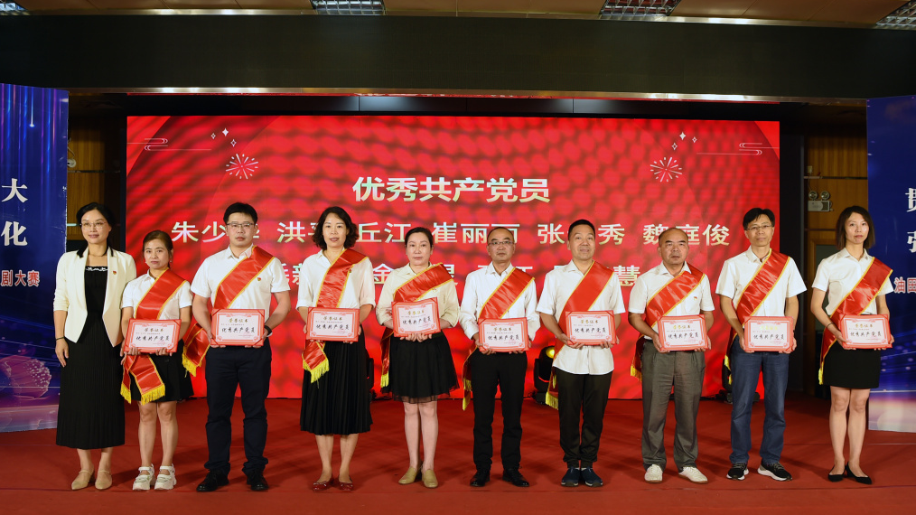 优秀党员(左起):朱少华、洪平、丘江、崔丽丽、张录秀、魏庭骏、毛新洲、金孝灵、严江、罗智慧
