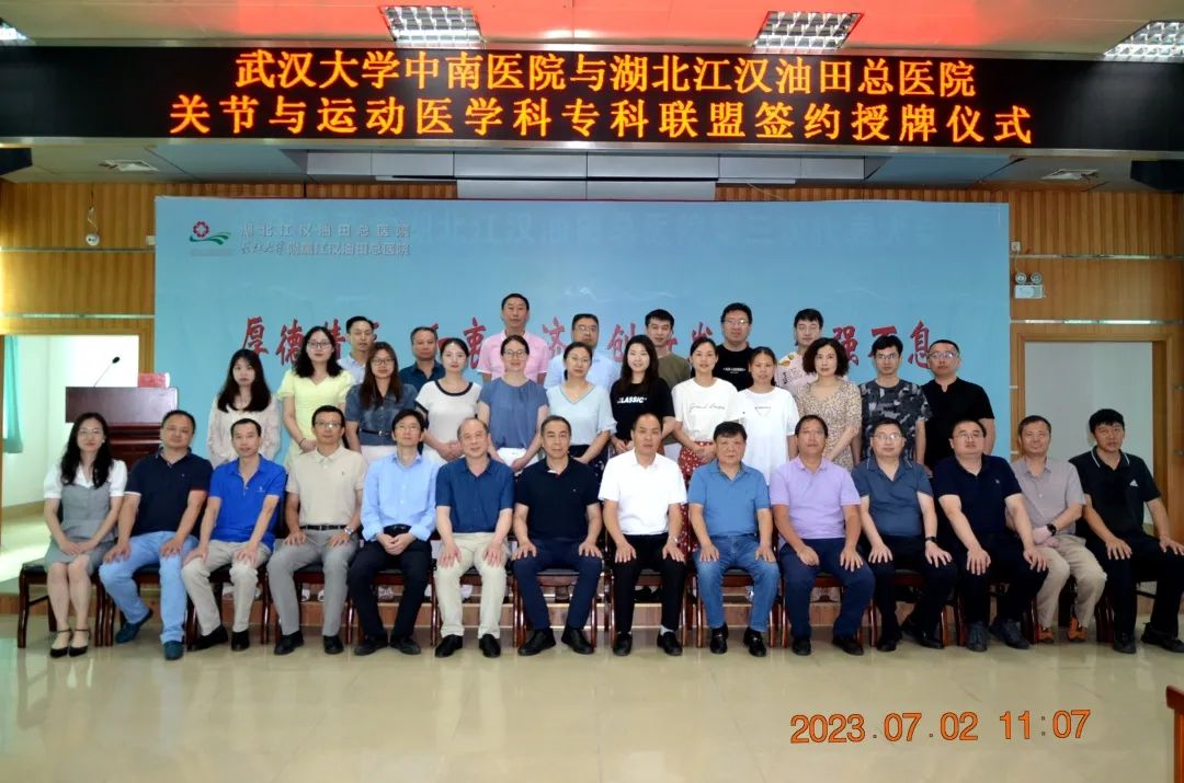 7月2日上午,油田总医院与武汉大学中南医院举行关节与运动医学科专科联盟签约授牌仪式。