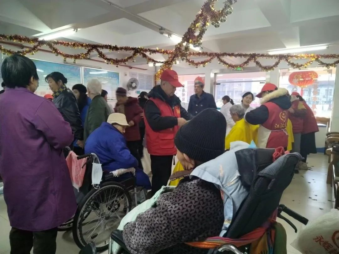 23日大清早,身着红色马甲、头戴红色帽子的江汉义工就出现在托老中心。“入托”的老人们在托老中心主任李明秋和护士长吴爱莲的爱心关环下有序排座,耐心而愉快地参与活动。每个老人脸上都洋溢着幸福的笑容。