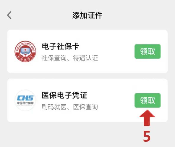 第五步:选择医保电子凭证,点击“领取”,并完成实名认证