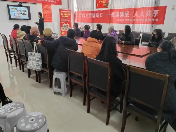 3月21日是世界睡眠日,油田总医院精神科主任黄辉和医生陈先强在向中社区举办了一场主题为“健康睡眠,人人共享”的健康讲座,旨在提高社区居民对健康睡眠的认识,帮助大家建立健康的睡眠习惯。