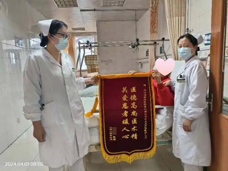 3月27日,在科室主任的指导下,经过充分的术前评估与准备后,徐明医生为徐大爷成功实施了小切口、微创PFNA内固定手术。术后,徐大爷因疼痛、行动受限而出现强烈的心理压力与焦虑情绪,医护人员敏锐察觉其抑郁症状,立即制定个性化心理干预方案。通过心理疏导、情感支持及家属参与,徐大爷的心理状态逐渐稳定,疼痛明显缓解,患肢肿胀消退,精神与饮食状况均有显著改善。徐大爷及其家属对我院骨二科医护人员的精心治疗与悉心关怀深受感动与感激,特赠予一面锦旗,以表对徐医生精湛医术与高尚医德的崇高敬意。