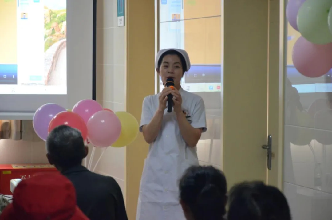 肿瘤科很多患者都会进行PICC置管,却不知置管后需要注意什么;化疗药物会引起恶心呕吐,也让患者谈化疗色变。为了减轻患者压力,增加治疗的依从性,医护人员带领大家一起观看了PICC置管后的健康宣教和处理预防恶心呕吐的教学视频,护士聂贝和关娟教大家做了PICC锻炼操,大家都兴致勃勃地跟着一起做。患者苏师傅上台给大家分享了他的治病经历。他说:“我得病已经好几年了,从去年下半年开始住院就没停过,一出院过两天就又住院,曾经以为撑不过去,我要感谢肿瘤科的医生和护士,是他们精湛的医术和耐心细致的护理,还有殷切的关心和鼓励,让我一直坚持下来,我现在觉得各方面都很好,所以大家一定要有信心,只要坚持就有希望。”