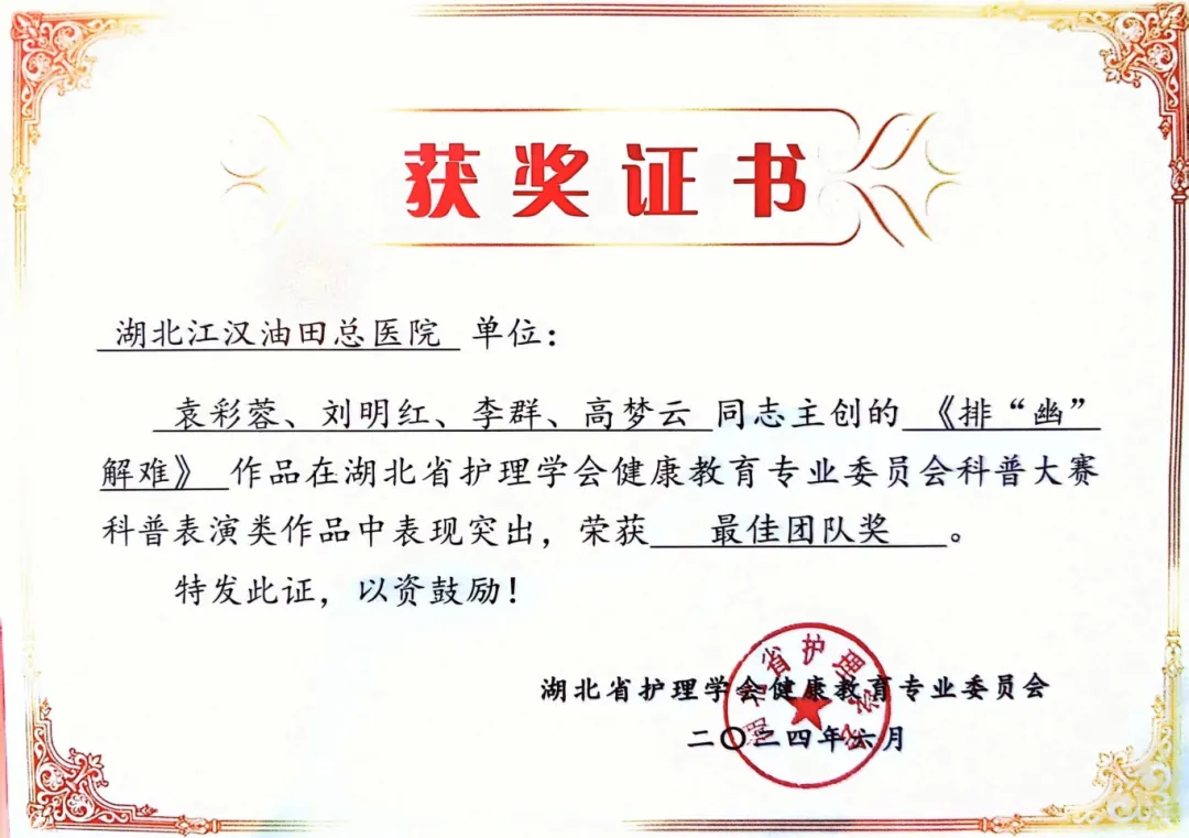 创新科普,演绎健康:《排“幽”解难》在湖北省护理学会健康教育竞赛中荣获佳绩